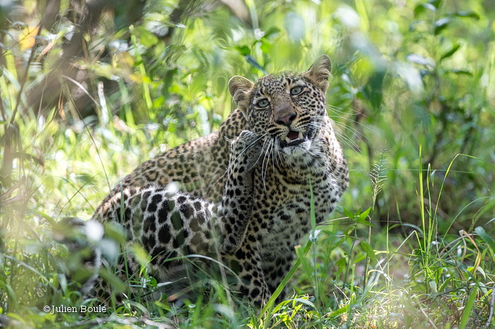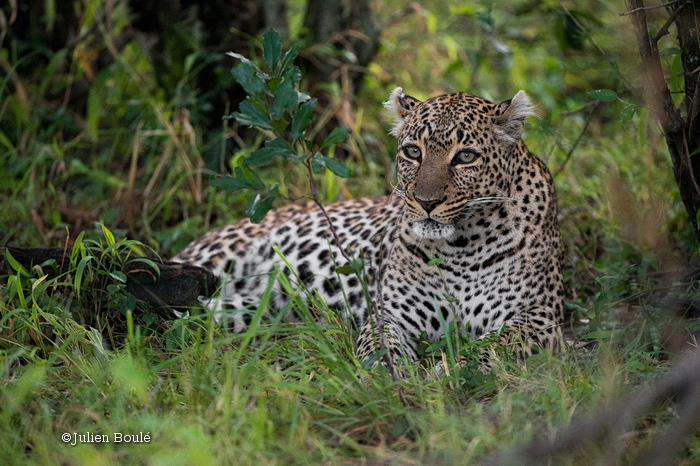 Mis à part les lions, s’il y a bien un animal que les gens veulent voir an Afrique, c’est certainement le léopard. Certains léopards du Mara sont très « connus » car territoriaux mais parfois difficiles à trouver. Avec pas mal de chances nous en avons vu 3. Une mère et sa jeune: Olive et Saba ainsi qu’une autre jeune nommée Bahati (une autre fille d’Olive, indépendante). Olive et Saba se sont montrées à nous près de 6 heures mais dans des conditions difficiles pour la photographie (dans de longues herbes, dans des arbres, à couvert) mais cela a de toute façon été fabuleux de passer autant de temps avec elles.