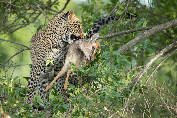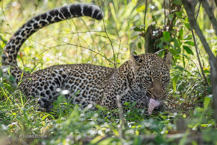 Nous n’avons vu Bahati qu’environ 20 minutes mais elle nous a fait un vrai spectacle, perchée sur une branche et jouant avec un dik dik mort. C’est vraiment symbolique concernant la photographie animalière: vous devez être patients ou chanceux ou les deux!