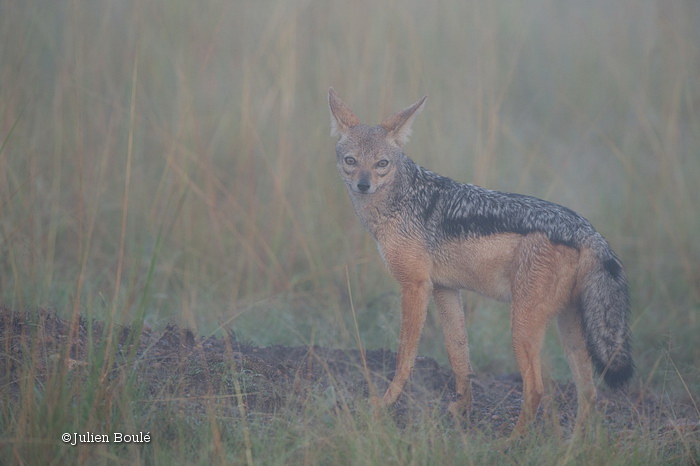 Black backed jackal (in the fog): / Chacal à chabraque (dans le brouillard):
