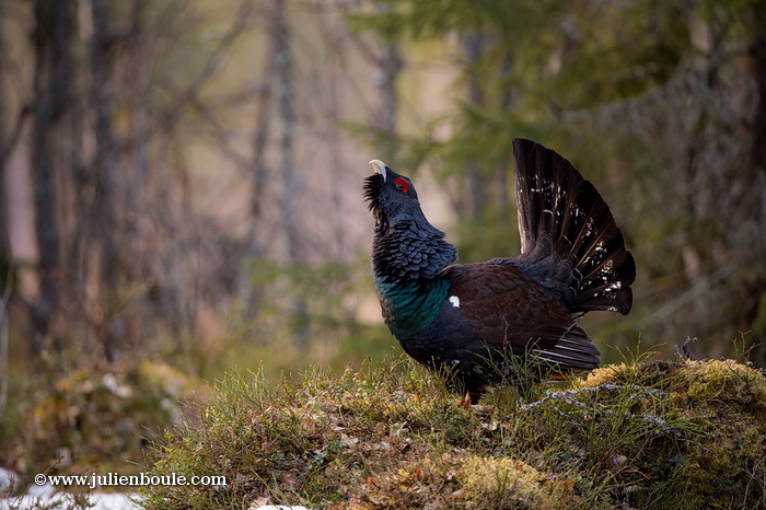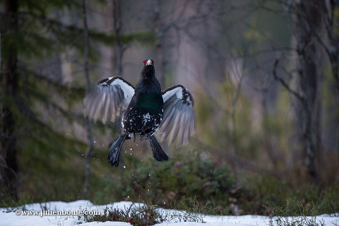 Spring is also a good time to do some birding! We spent a fantastic night waiting for the male capercaillie, but hell, how cold it was (-10°C)! We got quite a show with an early bird (starting at 3AM) starting a long display with very impressive attitudes and little squeakings. This bird is both beautiful and odd looking I must say!