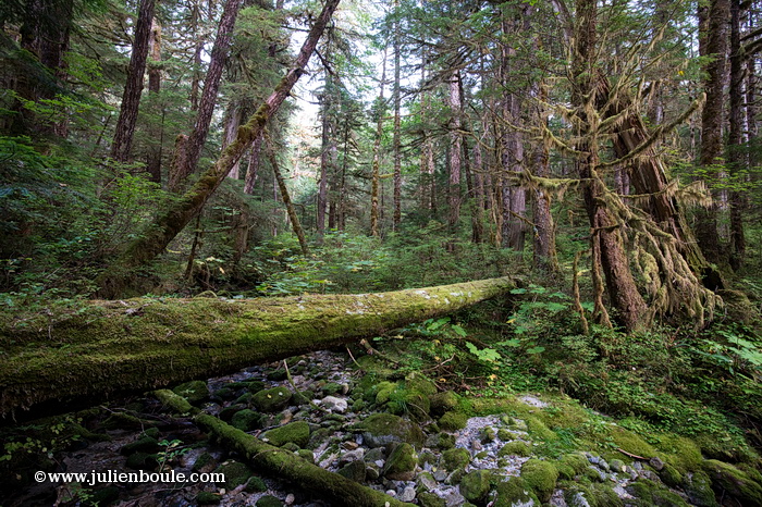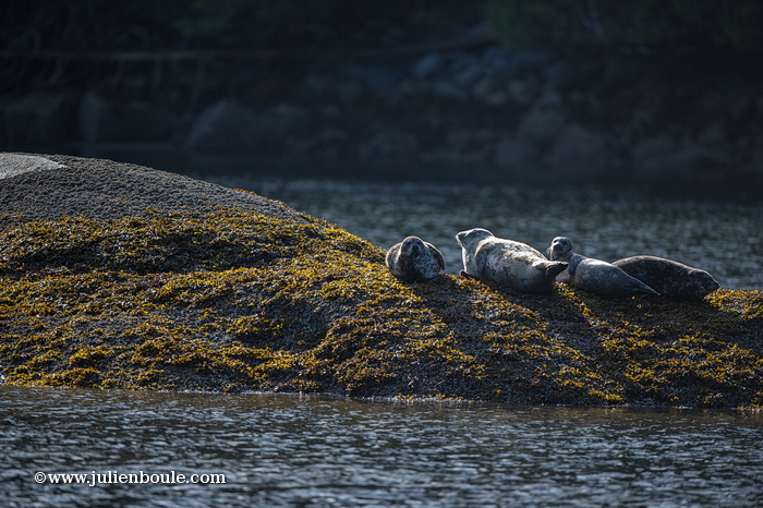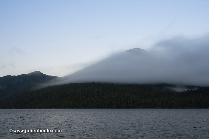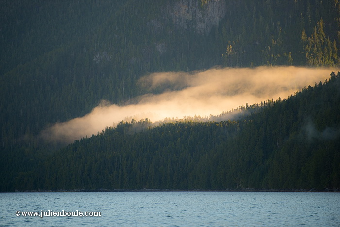 As the fog finally vanishes we head back to the canal. In the evening we would reach Lowe inlet, a levely calm bay. We would go for a short walk along a river where salmons had a recent run. The forest there is just magnificent: lichens, ferns, cedars and mushrooms are aplenty. No bears though! Beautiful ambiances of the rainforest with fallen dead trees covered by moss and lichen.