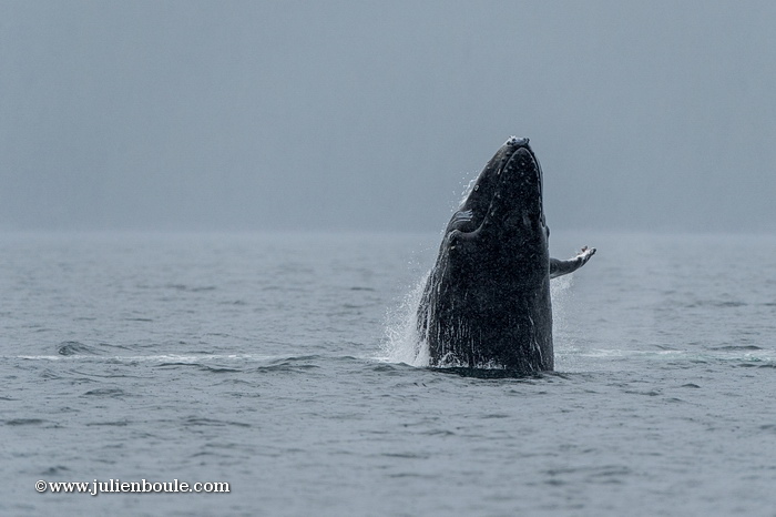As we were not afraid of the bad weather, JM Séveno, Erwann Balança and I would position at the tip of the boat for an extreme day! We saw a lot of humpback whales and activities. Very early we would bet on a mother and calf. The young would great us with a series of jumps, some of them right ahead of us, what a moment!