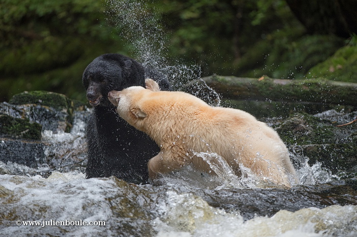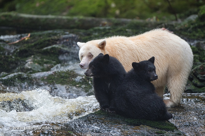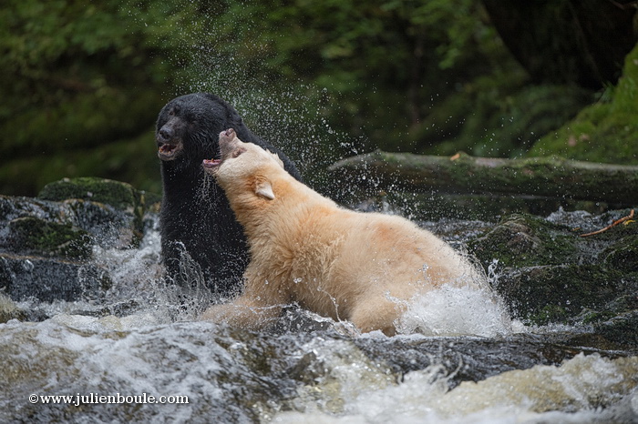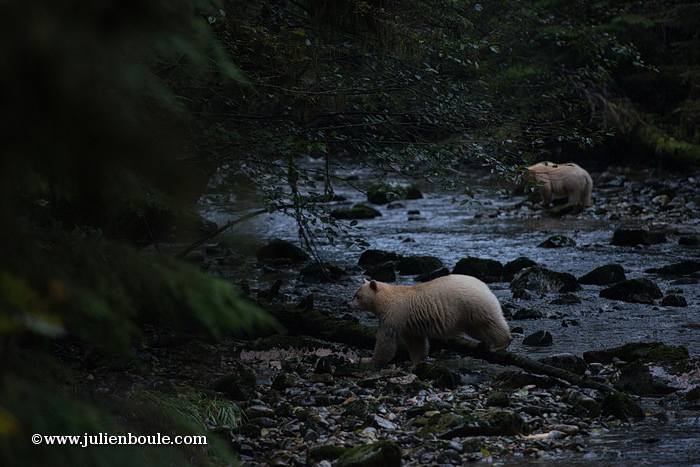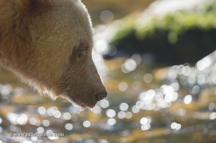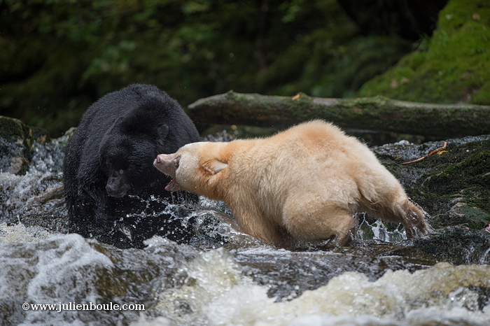 By Patrice Quillard: Très beau reportage que tu nous proposes là Julien ! Un régal ! Les conditions photographiques ont certainement été difficiles à gérer, mais tu as su réaliser de superbes images, récompensées entre autre à Montier 😀 Une de mes préférées est celle de l’ours kermode (la belle femelle avec les lunettes de panda) avec le filé d’eau pris en vitesse lente. Bravo pour ces images et l’ensemble du reportage.