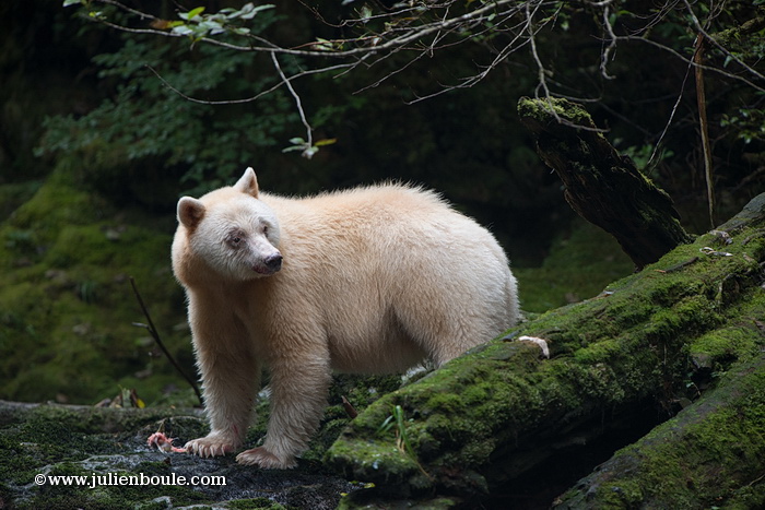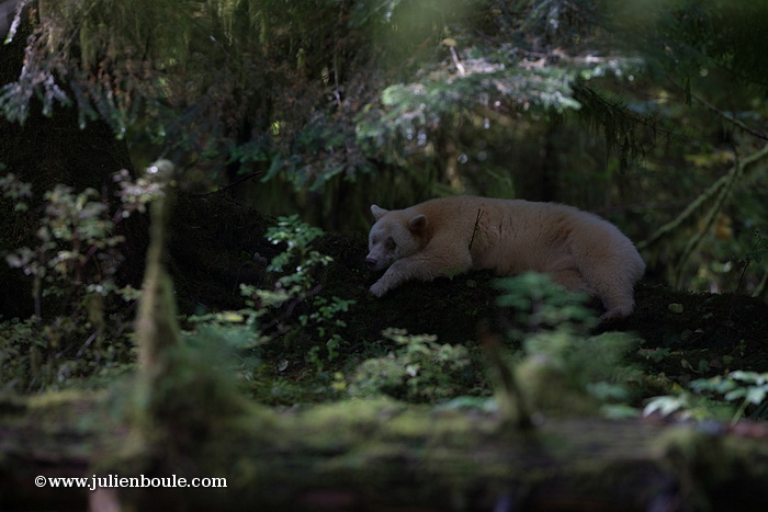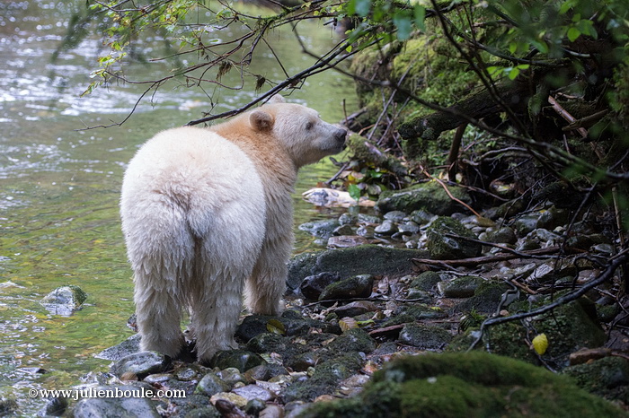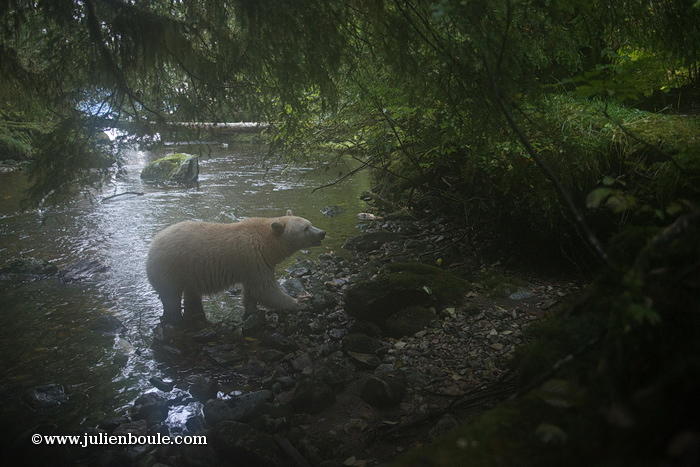In September 2014, I went for a cruise in British Columbia, Canada with Terres Oubliées. I met some great people there among whom Jean-Marie Séveno. We had to travel to Vancouver, then Prince Rupert in North British Columbia and then sail from there to Gribell Island. The goal of this trip was to meet with the ghost of the forest as known as the spirit bear. Spirit bear is no bear species, it is actually a black bear (ursus americanus) with a set of recessive genes which give him a creamy white fur when activated. The scientific name of this bear is Kermode bear (ursus americanus kermodei).