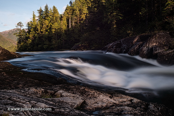 L’après-midi, nous arrivons à Lowe Inlet et nous effectuons une belle balade près d’une rivière avec une belle chute d’eau.