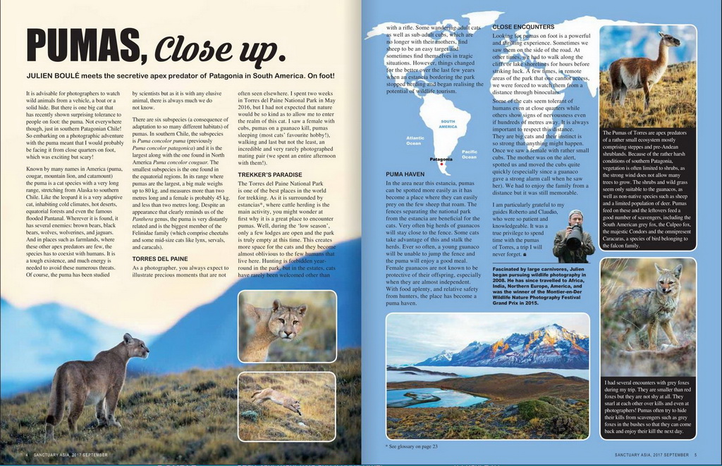 2017 – Article sur les pumas dans le magazine Indien « Sanctuary cubs »